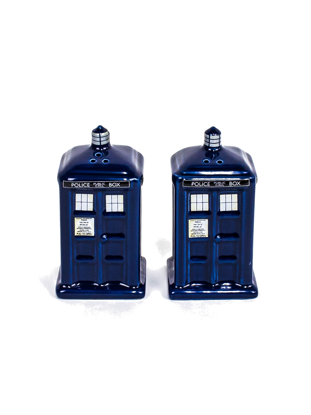 Geronimo your food creations with this Tardis salt and pepper. - Officialy liscensed BBC merchandise - Ceramic - Imported