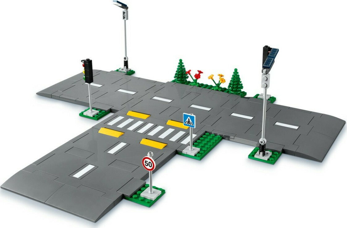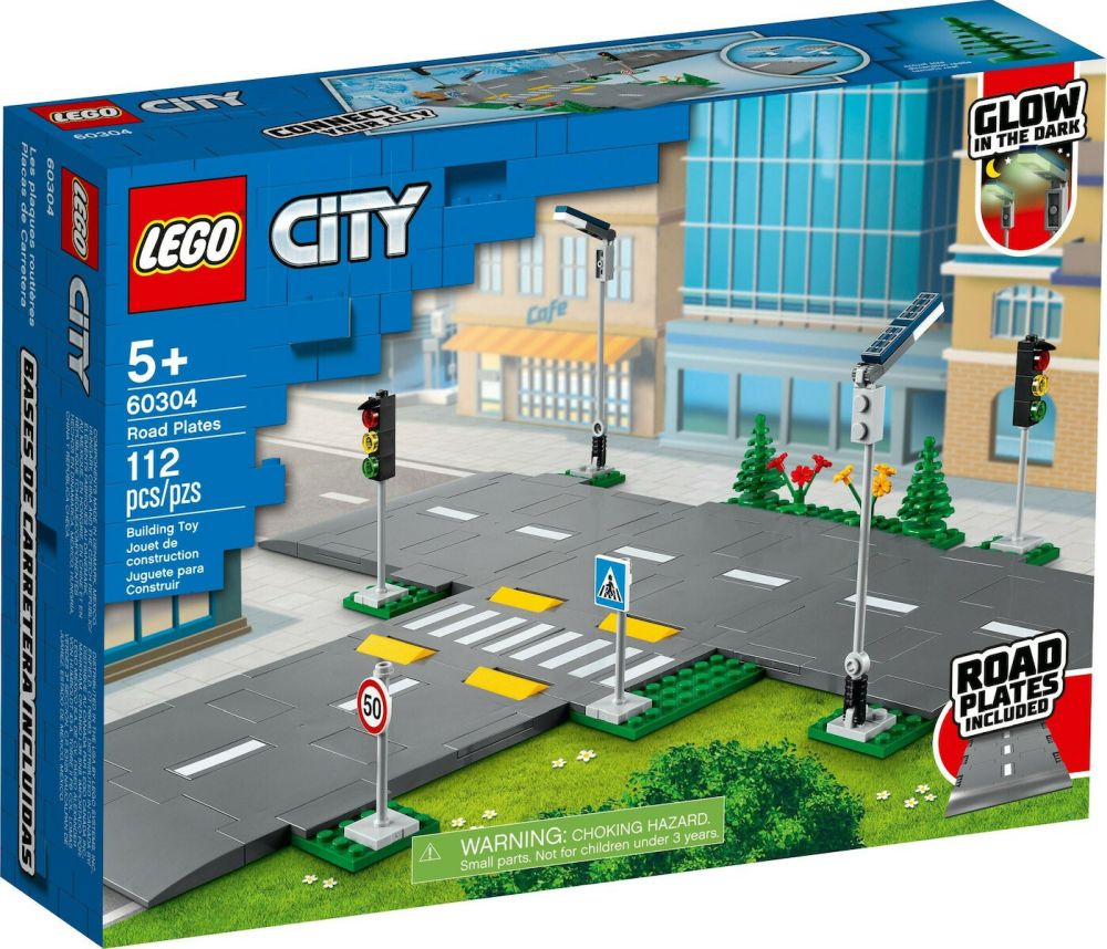 Add a realistic look to your LEGO® City creations and connect to other sets to expand your city with these cool LEGO City Road Plates. This awesome construction set comes with glow-in-the-dark streetlights, traffic lights, road signs, traffic lane markings, speed bumps, a crosswalk, trees and greenery.