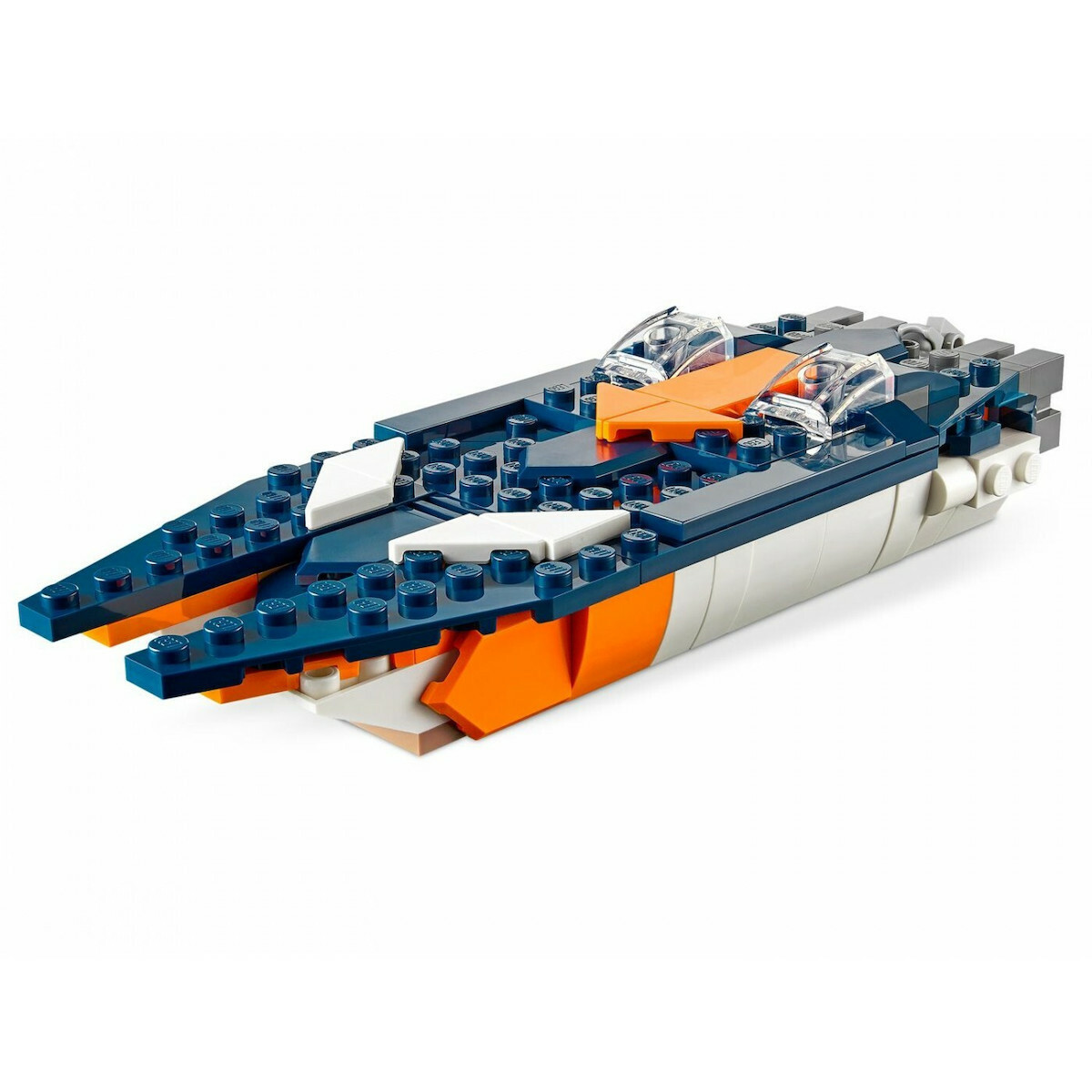 Experience amazing adventures high in the air or on water! Get behind the controls of the incredible Supersonic-jet to perform head-spinning tricks in the sky. Back on the ground rebuild the jet into a helicopter with rotating blades and head back into the air, or for fast-paced fun on the water rebuild it into a powerboat. The possibilities are endless with this 3in1 set.