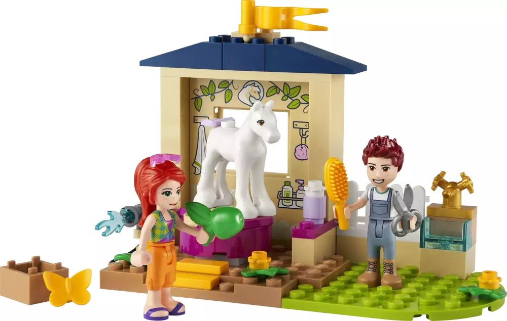 Wash and groom Mia’s pony at the stable. Help Meringue onto the rotating stand and give her a refreshing shower as she turns. Help Daniel comb and clip the pony’s mane to make her look her best. Since she’s been so good, reward her with an apple!