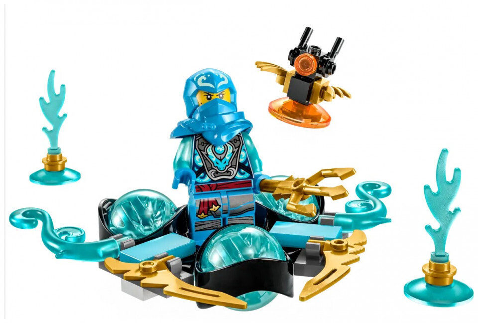 Get ready to train Dragon Power Nya to improve her ninja skills on this obstacle course! Place her inside the spinner, push forward on it and watch how she drifts. She needs to avoid the water obstacles, take down the Imperium Droid with his staff and grab the prized golden dragon energy core element, which is inside a bowl. Keep practicing to protect the new NINJAGO® world!