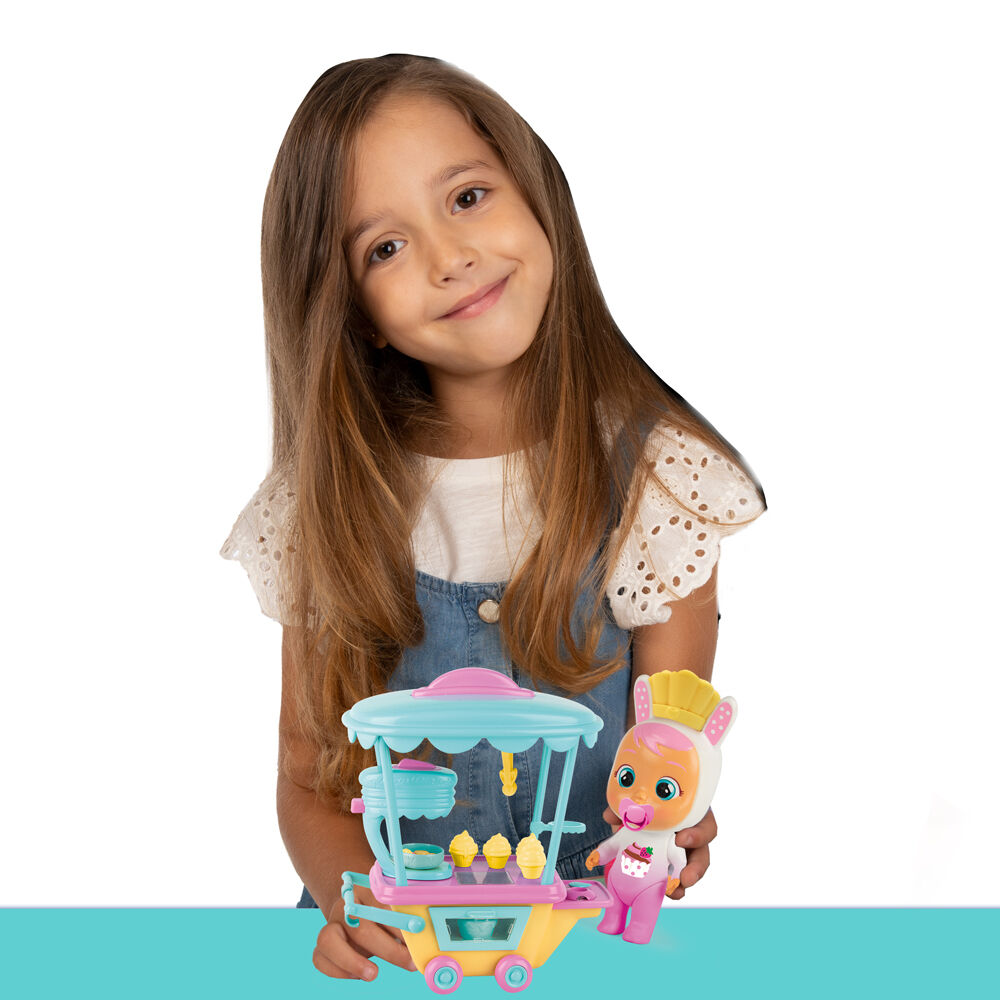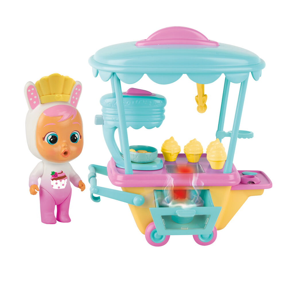 Coney’s Sweet Shop is the sweetest place in the magical world of Cry Babies Magic Tears! Play with Coney, the Cry Baby who loves baking sweets and sharing them with her friends, and create cupcakes and macaroons. Feed her with the bottle, press her tummy, and she will cry real tears! When Coney’s tears fall into the tear collector, the oven activates: the lights turn on and smoke comes out of the oven. Your sweets are now ready to serve.