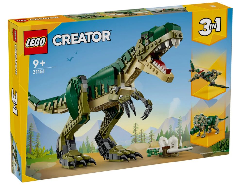Travel back in time for fun-filled adventures with 3 amazing dinosaur figures. Build a fearsome T. rex with its large teeth and powerful body. For more dinosaur action, you can rebuild the model into a triceratops with its spiked crest and 3 horns, or a pterodactyl with its large wings to soar into the sky. The choice is yours with this fantastic 3in1 set!