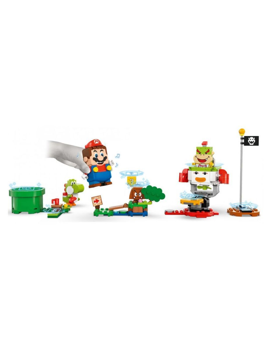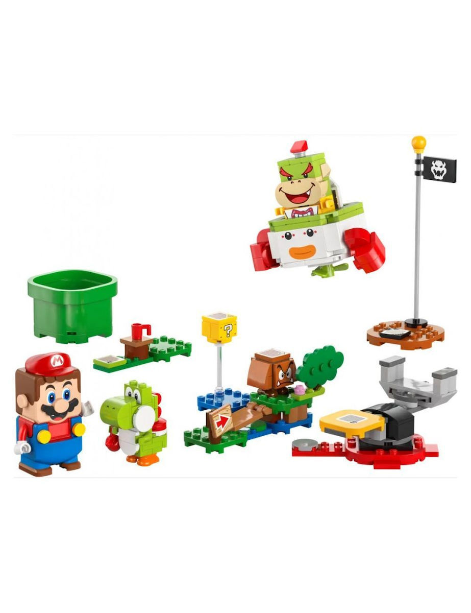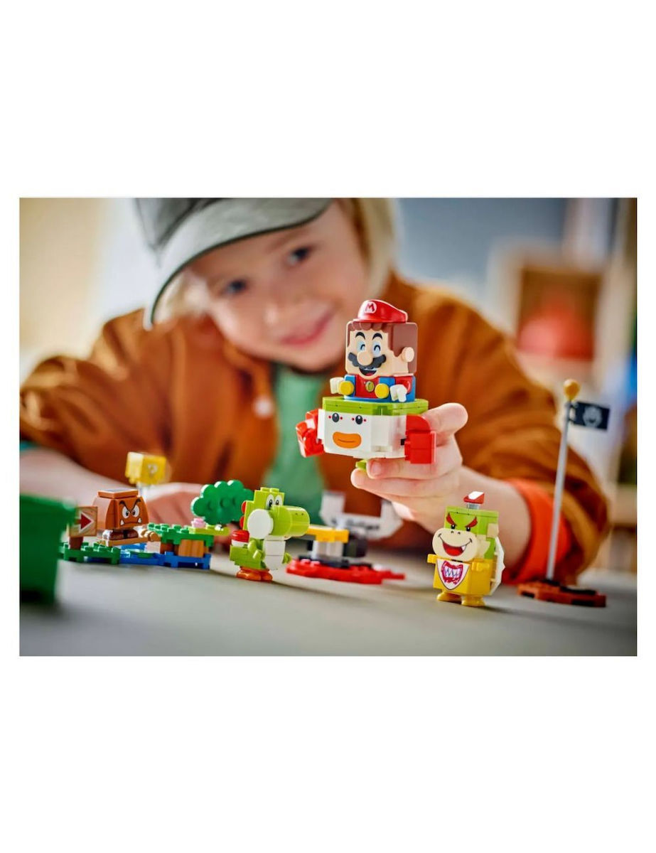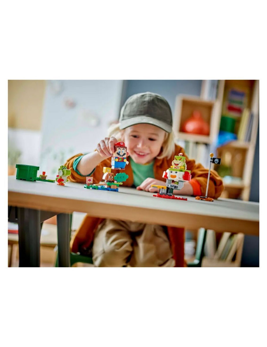 Team up with LEGO® Mario™ for an interactive, coin-collecting adventure! Begin at the Start Pipe and greet Yoshi. Defeat a Goomba and stomp on the ? Block, then take on Bowser Jr. Topple him off the platform and out of his Junior Clown Car, then ride away in the car to the Goal Pole!