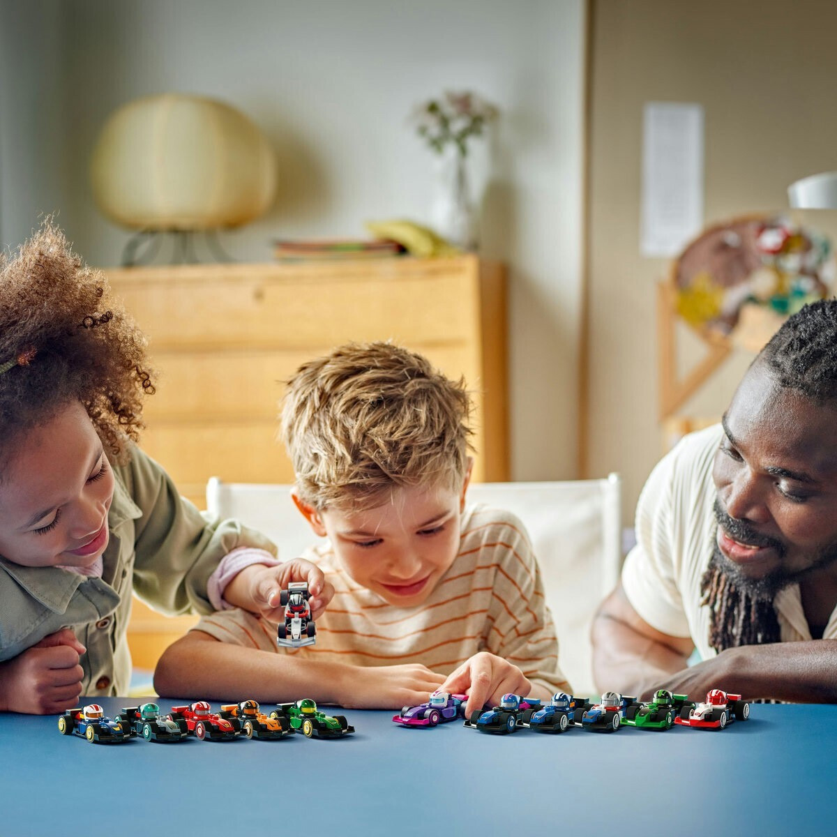 Take your place on the starting grid with these F1® Collectible Race Cars mystery boxes. There are 12 F1 race cars with moving wheels and a helmet to unseal, from the RB20, Mercedes-AMG, Ferrari, McLaren, Aston Martin, Alpine, Williams, VCARB, Sauber and Haas F1 teams, plus an F1 car and an F1 ACADEMY™ car. Which Formula 1® race car will you find in your mystery box?