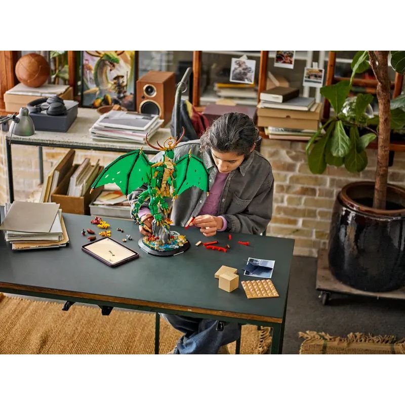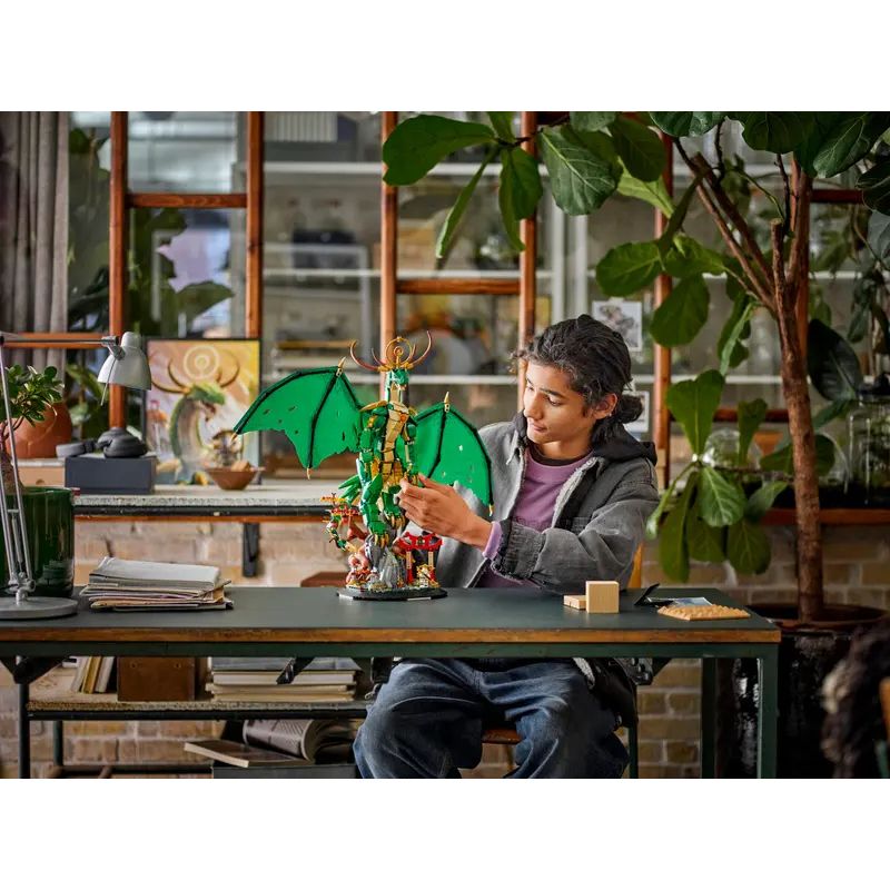 Here’s your chance to display a majestic and highly detailed LEGO® NINJAGO® model with The Guardian Dragon building kit. This dragon figure has a posable head, arms and scales, plus large wings, spikes and a halo above its head, and it comes on a stand showcasing a pond, a floating magical sword, lantern elements and a gate, plus a Master Wu minifigure.