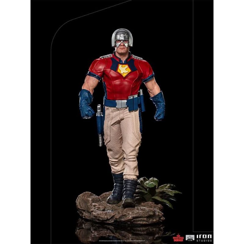 Peacemaker, the most radical vigilante of The Suicide Squad, comes to life in this powerful Art Scale 1/10 statue by Iron Studios. With his signature chrome helmet, red-blue-white costume, and imposing muscular build, he boldly stands in the Corto Maltese jungle, clearly not concerned with camouflage. Played by John Cena, the character is known for his twisted motto: he’ll kill as many people as necessary in the name of peace.