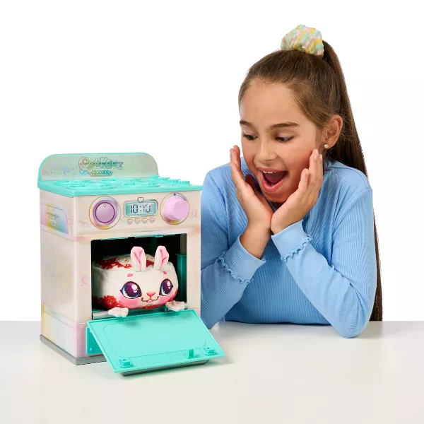The Cookeez Makery Party Treatz will amaze you and your child as they bake a warm, scented, and interactive plush surprise friend! When opening the oven door, they discover their own warm, cinnamon-scented, interactive plush friend shaped like a yummy baked treat.