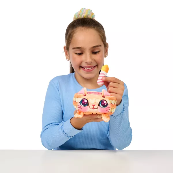 There are 3 Party Treatz to create: Red Velvet Bunny, Choc Fudge Fido, and Strawberry Cateaux. The plush toy is warm, deliciously scented, interactive, and makes lovable sounds when squeezed.