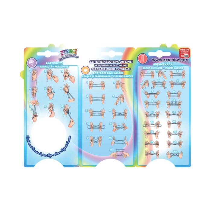 With Ztringz, you can create endless patterns using only your hands! The original Ztringz rope comes in vibrant rainbow colors and offers hours of fun, imagination, and creativity. Play solo or with friends and learn to make shapes, figures, and cool tricks step by step. Ztringz is easy to use, suitable for all ages, and compact enough to take with you anywhere. Explore new designs and get inspired by the Ztringz Academy, the official source for tips and tutorials!