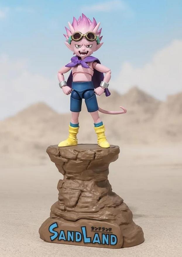 Beelzebub from "SAND LAND" joins the impressive S.H.Figuarts line, bringing your favorite character to life with numerous expressions and accessories for authentic posing. This figure includes five interchangeable facial expressions, four pairs of optional hands, crossed arms pose, optional back parts, goggles, cape parts (x2), and alternative hair, allowing you to recreate scenes from the game with great detail and realism.