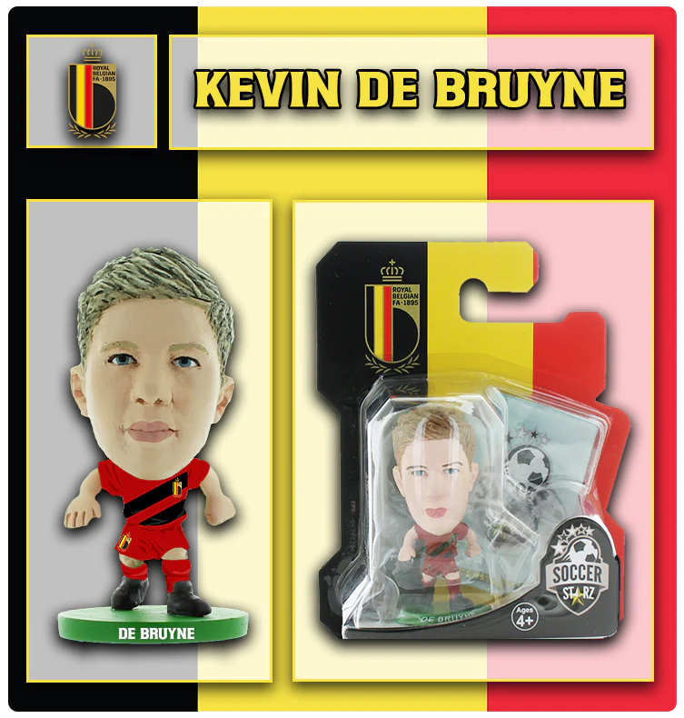 The collectible Kevin De Bruyne SoccerStarz figure featuring the new Belgium national team kit is a fantastic addition for any football fan and collector. Known for his technical skill, visionary passing, and leadership in midfield, De Bruyne is detailed in this approximately 5 cm tall figure. This officially licensed figure is suitable for children aged 4 and above.