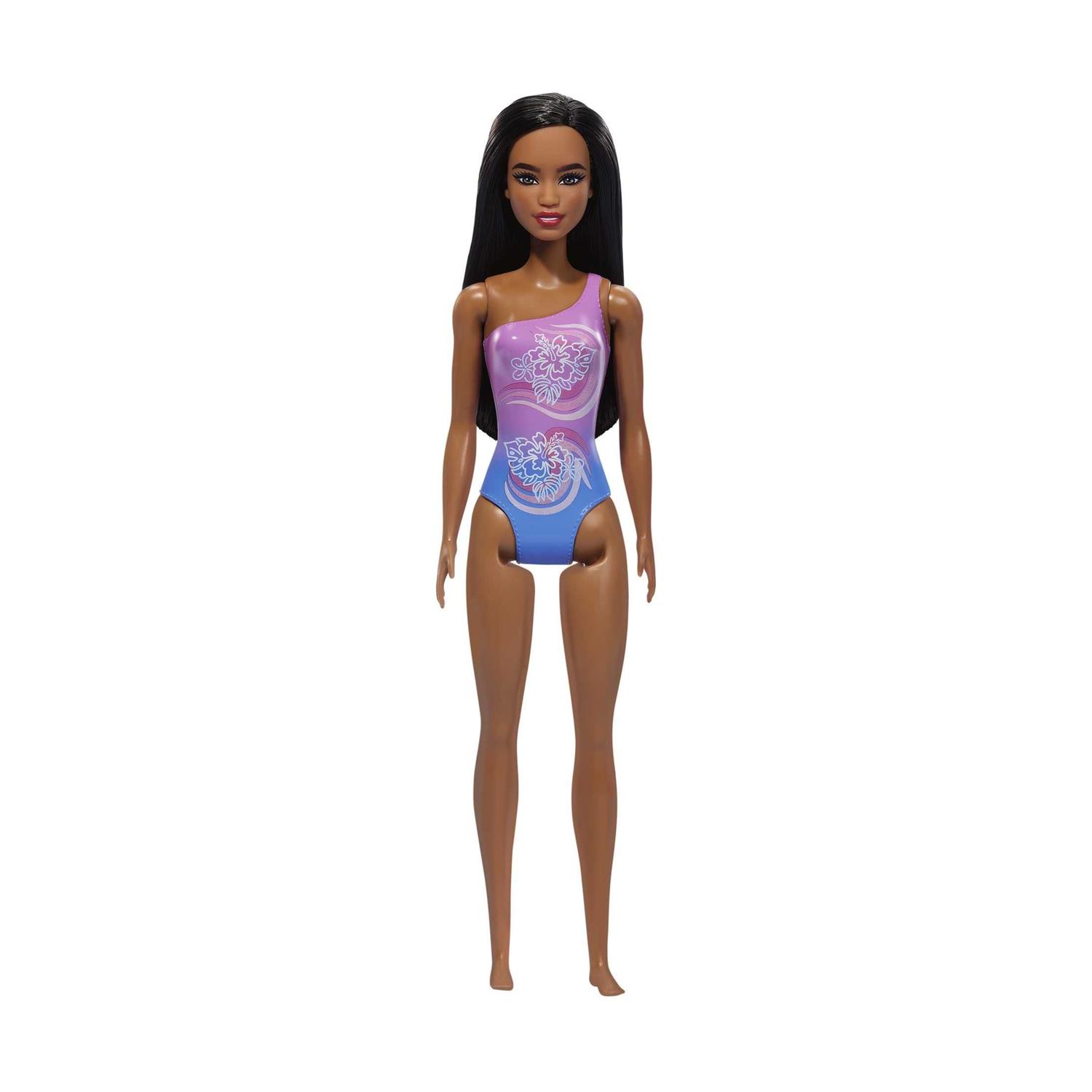 - Doll Appearance: Dark skin tone, tropical pink and blue swimsuit