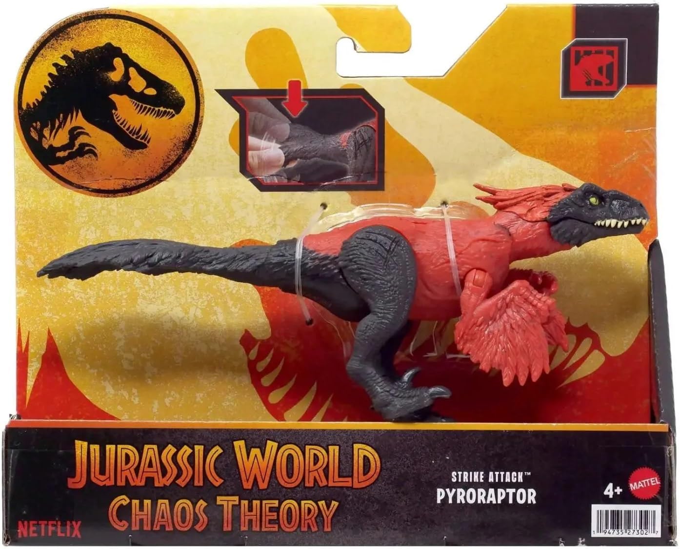 Experience unique attacks and action-packed adventures with the Pyroraptor from the Jurassic World Attack Bite collection. Each dinosaur features a species-specific attack characteristic for interactive play. The figure has movable joints, realistic details, and true-to-movie decoration, measuring approximately 7 inches long and 3 inches tall. The Attack Bite collection makes an excellent gift for dinosaur lovers ages 4 and up, with each figure sold separately and subject to availability. Discover and build your adventure by scanning the hidden tracking code on the dinosaur using the free Jurassic World Play app on compatible Android or iOS devices to unlock augmented reality activities and create your own digital dinosaur collection. In this digital experience, you can participate in exciting motocross races, activating "Destruction Mode" to become a fierce dinosaur that destroys everything in its path while collecting keys and badges and dodging obstacles on an adventure-filled track.