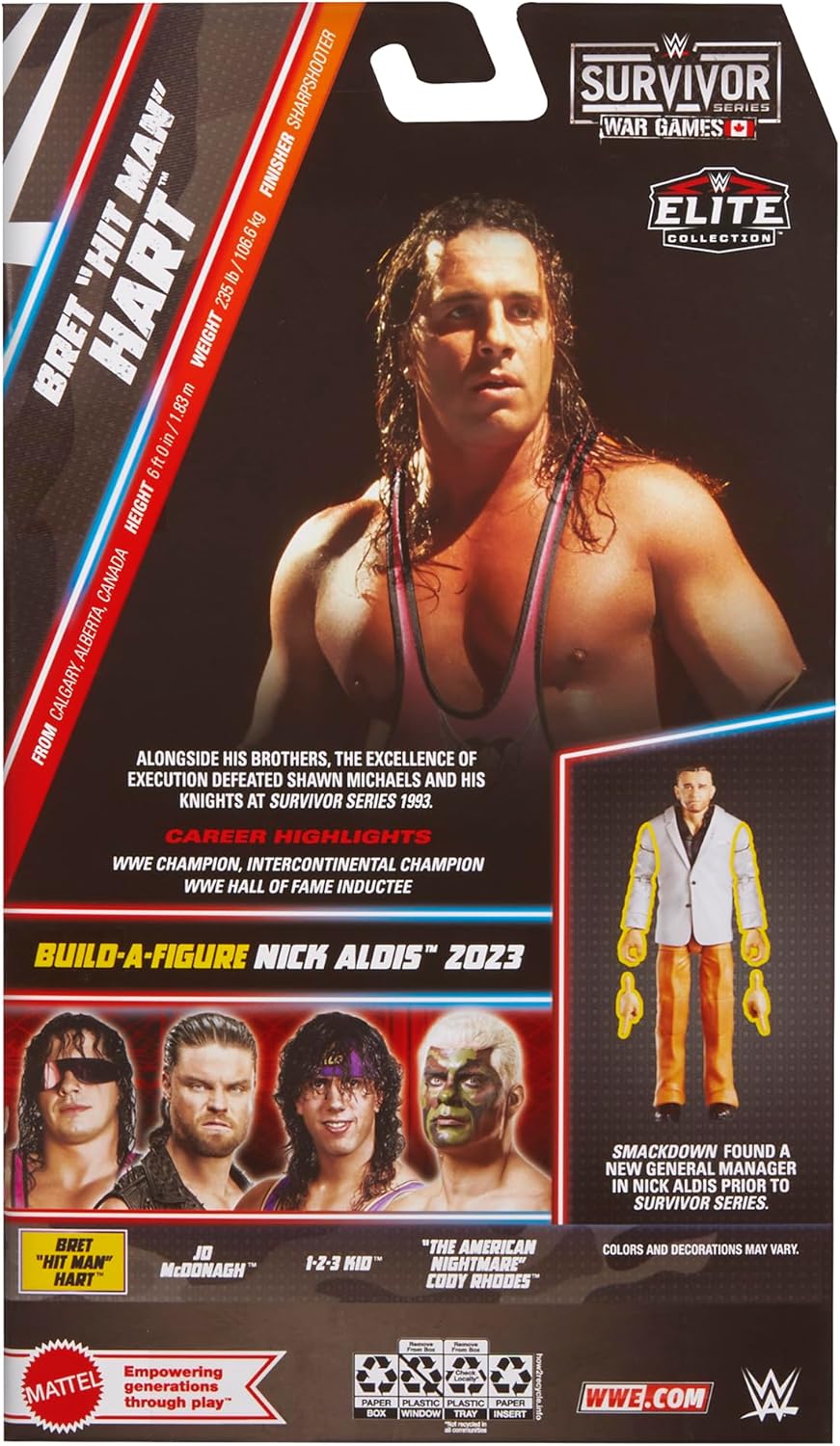 The Hart Family stands united with Bret "Hit Man" Hart in the Mattel WWE Elite Survivor Series 2025 collection! The WWE Elite Survivor Series line celebrates the greatest moments in the event’s history, and the Hitman claims the King’s throne at Survivor Series 1993 with a determined headscan.