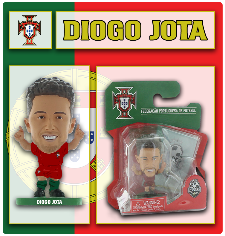 Collect the Diogo Jota Portugal figure in the Home Kit from the SoccerStarz series. This hand-crafted figure accurately mirrors the real player and stands 2 inches (approx. 5 cm) tall, perfect for collecting or play. The SoccerStarz line features over 700 figures to collect in various formats including Single Blister Packs, Blind Bags, Team Packs, 4 Figure Blister Packs, and Bargain Buckets, covering both club and international teams.
