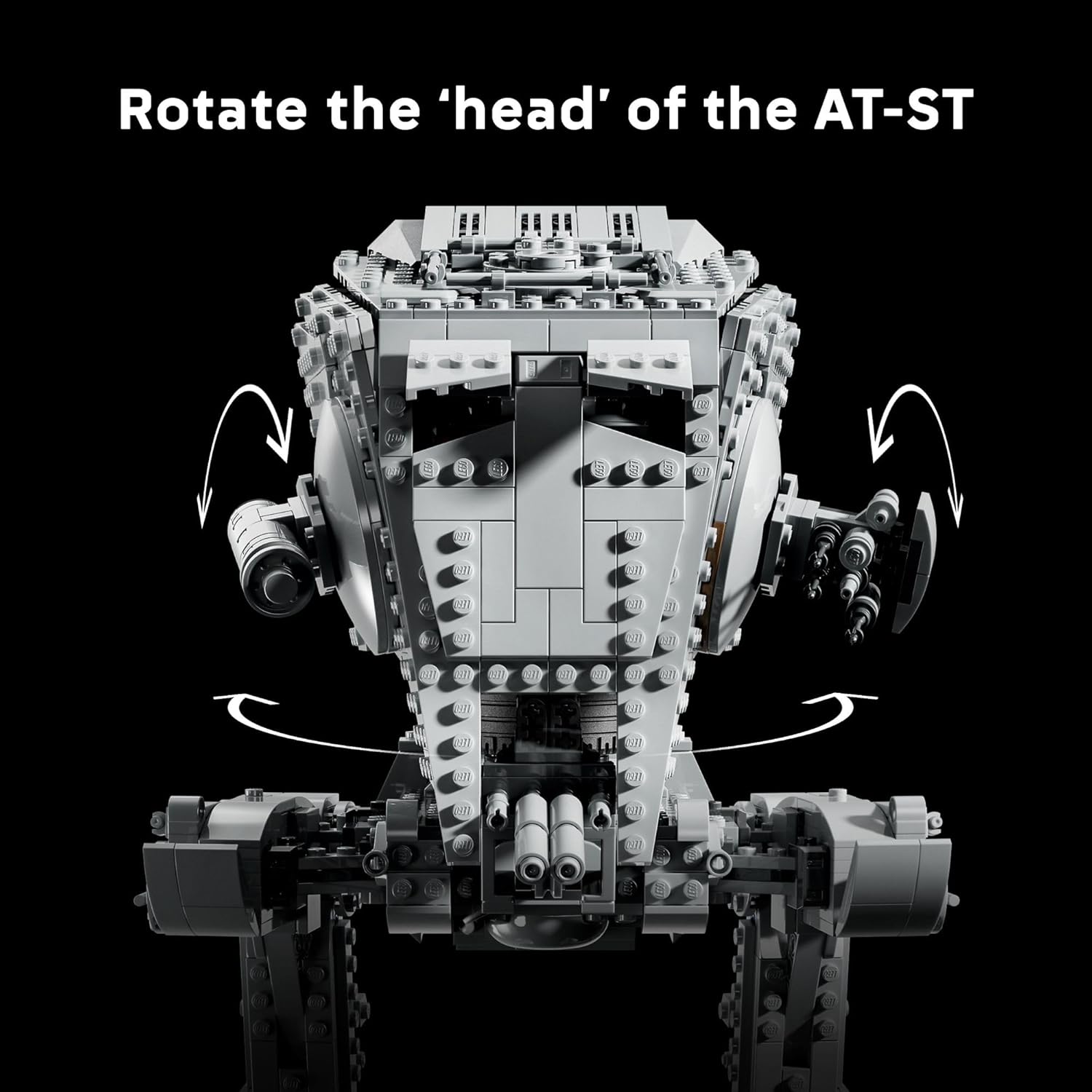 Be transported to the battlefields of Endor as you build the Ultimate Collector Series version of an AT-ST from the classic Star Wars™ saga. Open the top hatch to view the detailed cockpit. Rotate the ‘head’ of the AT-ST. Open and close the viewports and adjust the laser cannons. Display your creation next to the unique AT-ST Driver LEGO® Star Wars minifigure and information plaque.