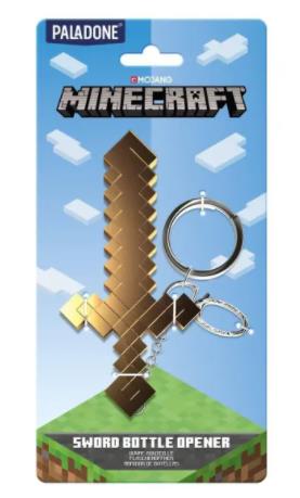 Enjoy your drinks with the Paladone Minecraft Sword Bottle Opener. Shaped like the blocky swords from the pixelated Minecraft video game, this handy keyring opens bottle tops with ease. It features a metal ring for keeping keys organized, hanging on a bag, or clipping to a belt loop. Presented on a branded, full-colour card, it’s the perfect gift for any fan of the hit video game.