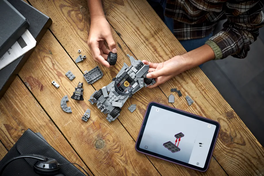 The Batman Batmobile model kit features a front-mounted, non-functioning shooter, opening cockpit and headlight details depicted with graphic stickers. A commemorative golden coin is built into the car’s interior. The Batman minifigure can be seated inside the vehicle’s cockpit. And with the LEGO Builder app, kids can zoom, rotate in 3D and track progress as they build. Set contains 220 pieces.