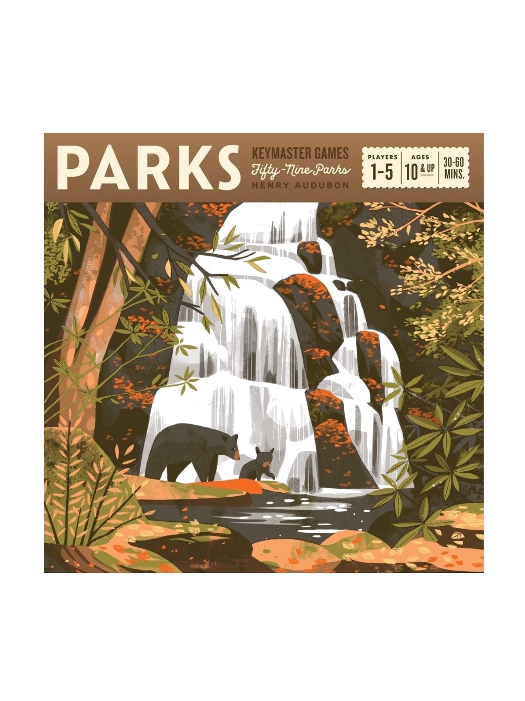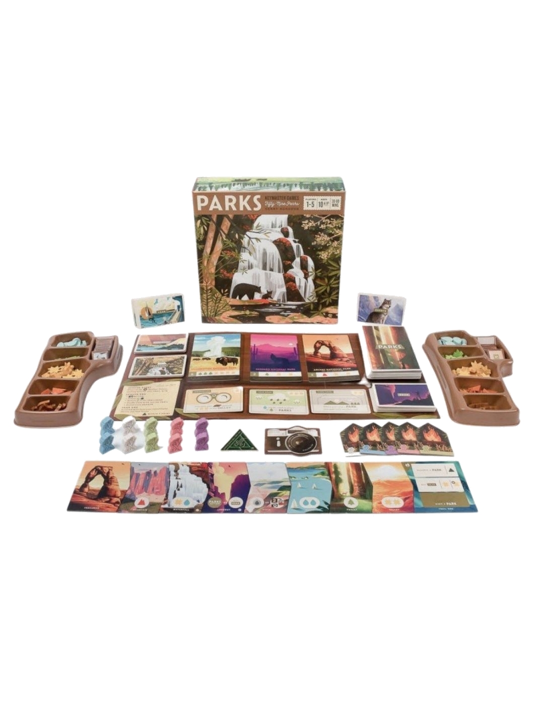PARKS is a celebration of the US National Parks featuring illustrious art from Fifty-Nine Parks. In PARKS, players will take on the role of two hikers as they trek through different trails across four seasons of the year. While on the trail, these hikers will take actions and collect memories of the places your hikers visit. These memories are represented by various resource tokens like mountains and forests. Collecting these memories in sets will allow players to trade them in to visit a National Park at the end of each hike. - Age Range 10+ - Players: 1-5 - Publisher Keymaster Games - English Version - Imported