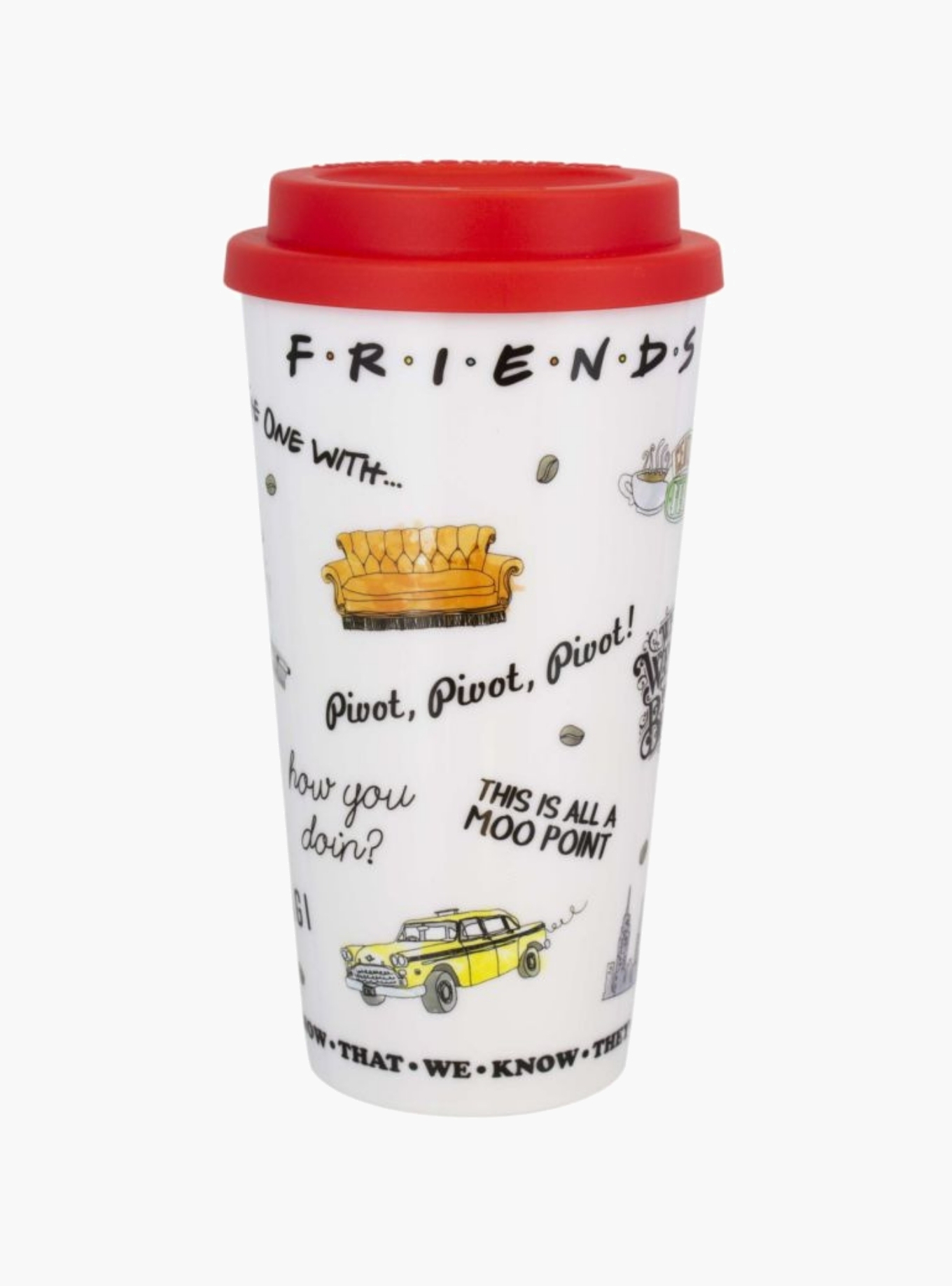 Whether you're on a busy train, a crowded bus, or at your desk at work, transport yourself to your favourite fictional coffee shop with this Friends travel mug! - Officially licensed - Plastic - Imported