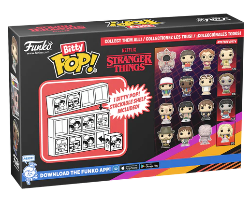 Your favourite Stranger Things characters have been shrunk into Bitty Pops! Expand your collection with this assortment featuring beloved heroes and monsters miniaturized as Bitty Pop! figures.