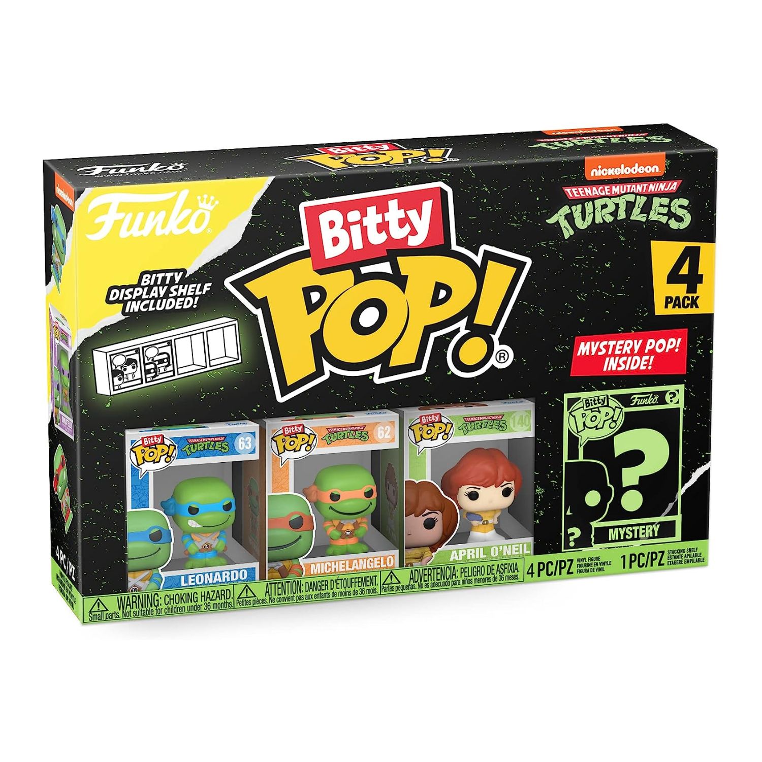 Your favourite Pops! have been shrunk into Bitty Pops! Expand your collection with this assortment of Bitty Pop! figures featuring your most beloved cartoon characters from the Teenage Mutant Ninja Turtles! Each 4-pack comes with one rare or hyper rare mystery Bitty Pop! to complete the series. Bitty Pops! are packaged in hard acrylic cases with detachable bottom lids. Detachable bottom lids double as acrylic bases, to which the Bitty Pop! figures are adhered.