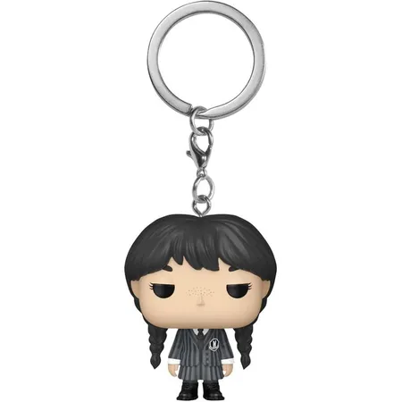 This terrifyingly terrific Funko Pop! keychain is ready to uncover dark secrets and solve heinous crimes. Complete your Nevermore Academy attendance with the Wednesday Addams Pop! keychain and reunite her with fellow characters from the series for a unique television lineup collection.