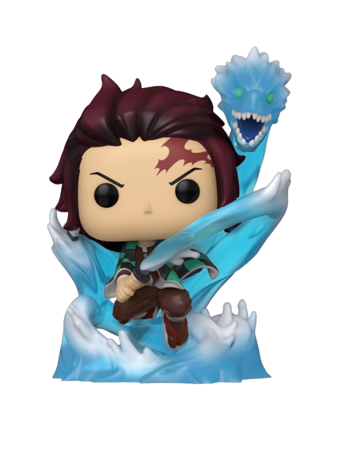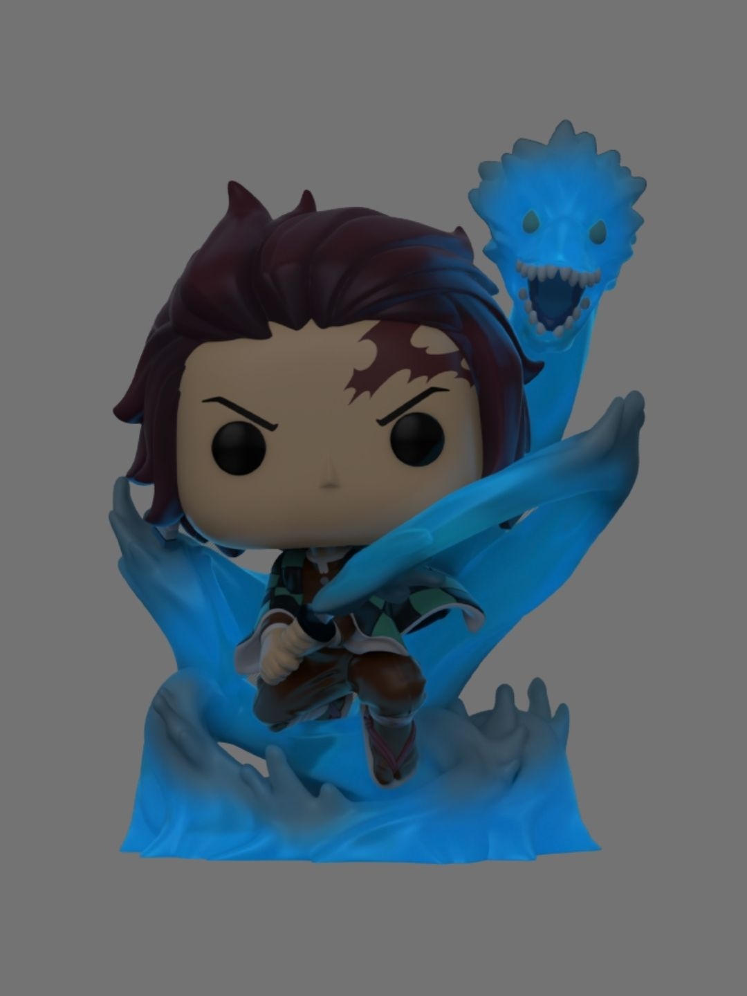 Tanjiro Kamado returns more powerful than ever! This epic Special Edition Funko Pop! figure features Tanjiro performing his Constant Flux attack – a continuous water-based strike that takes the shape of a dragon, increasing in strength with each spin. Best of all, it glows in the dark (GITD), making it an eye-catching centerpiece for any collection!