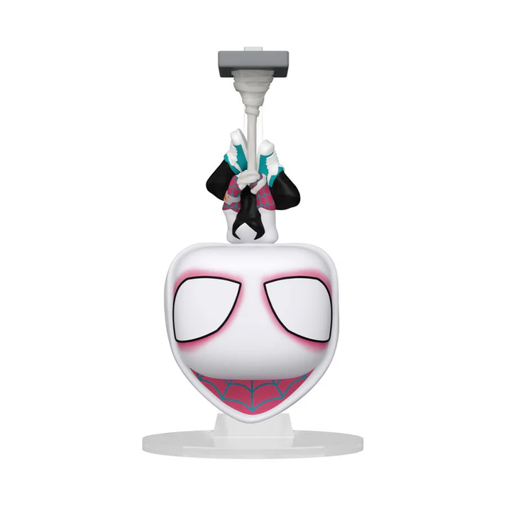 - Design: Spider-Gwen in an upside-down stance with web, showcasing her iconic look from the movie.