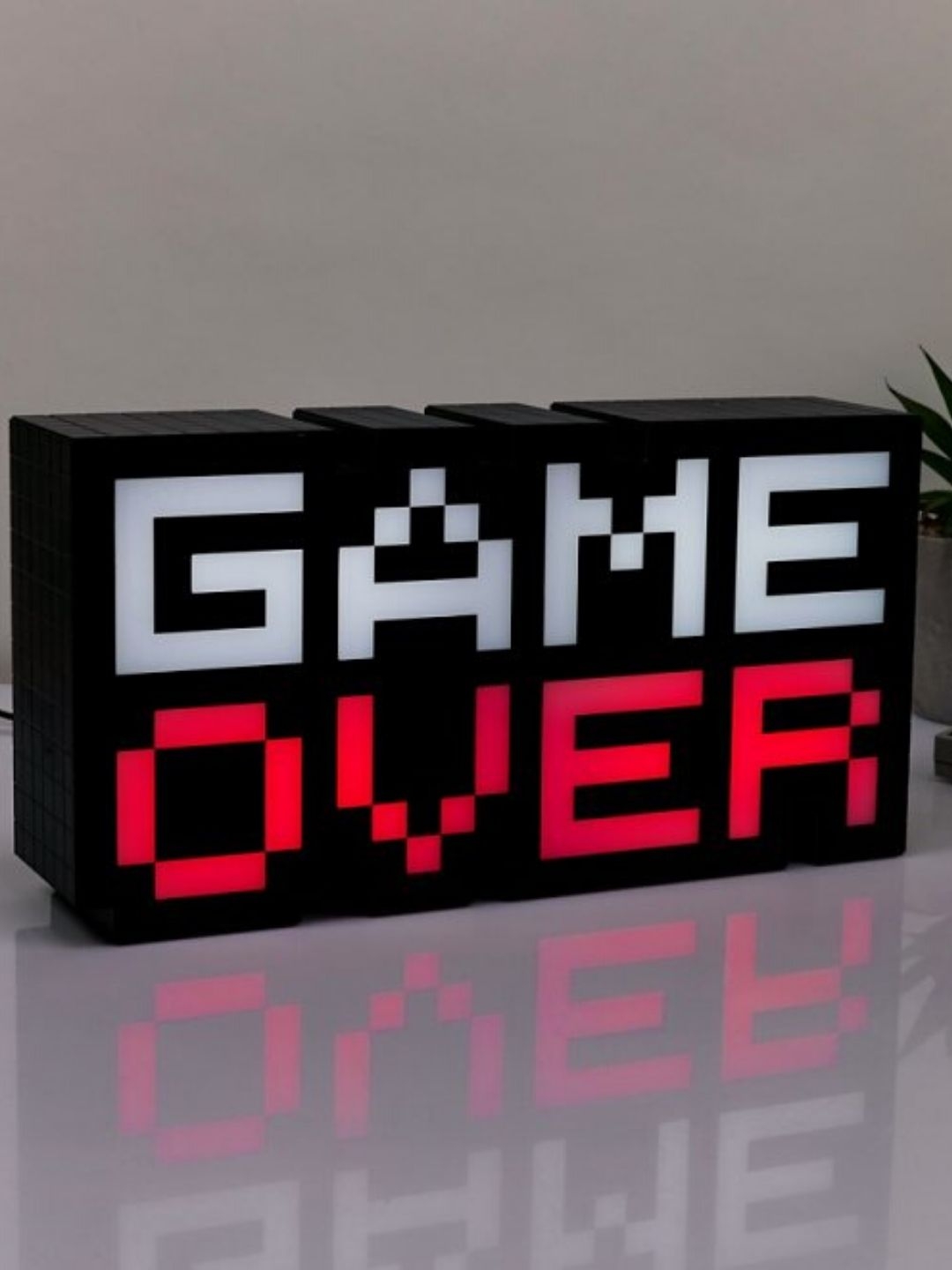 A great gift for gamers of all ages, this Game Over Light brightens up any bedroom or gaming den. Standing 30cm wide (approx 12in), this homage to the 8-bit gaming era is a retro-cool gift celebrating the big, brash, and colorful early days of gaming culture. USB cable included.