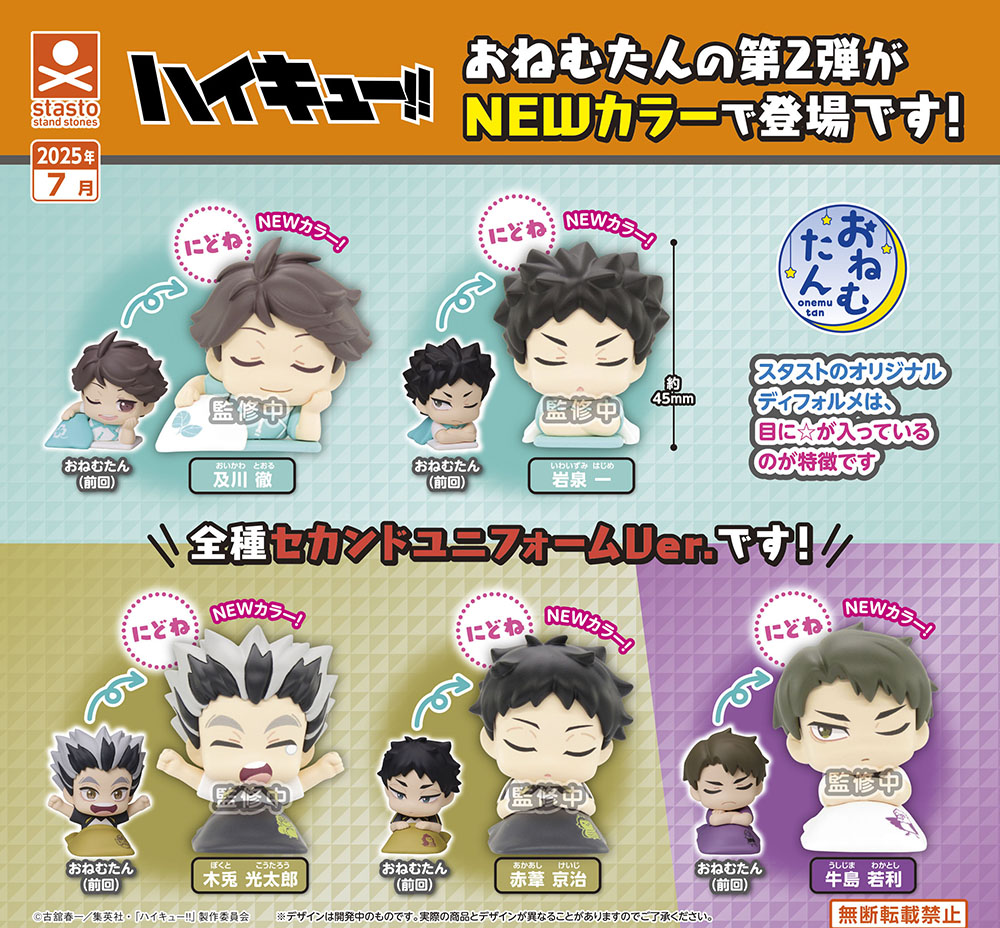 The Gashapon Onemutan Haikyuu series features cute and soft figures of popular characters from Haikyu!!, available in a random selection. This Vol. 2 Go Back to Sleep Second Uniform Color Ver., released by Stand Stones, offers variety in designs and uniform colors, making each figure a unique collectible addition. Each pack contains one random figure, perfect for collection, display, or as a gift for fans. The series allows collectors to gather all characters in this special edition, while the small scale and soft texture make the figures adorable and enjoyable to handle.