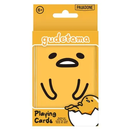 Discover the full set of 52 playing cards featuring the beloved lazy character Gudetama, housed in an embossed metal storage tin for easy storage and protection. Perfect for playing games, collecting, or gifting to fans of the character.
