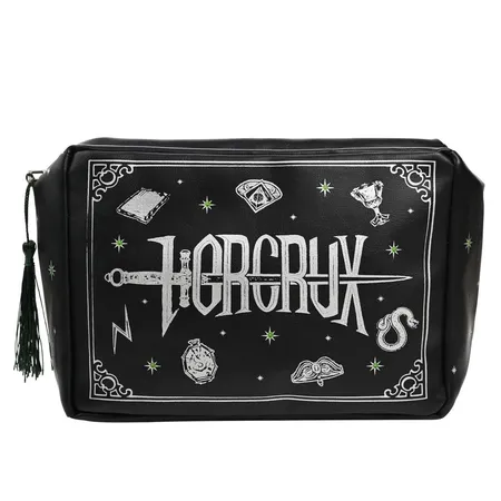 A Horcrux wash bag from the Harry Potter Dark Arts collection by WARNER BROS®. Dive into the mystical world of wizardry with this striking black wash bag, designed for the most devoted Harry Potter fans. Crafted from high-quality textiles and adorned with authentic Harry Potter embellishments, this wash bag is as durable as it is enchanting. It's incredibly functional, offering fans a magical way to organize and carry their personal care essentials.