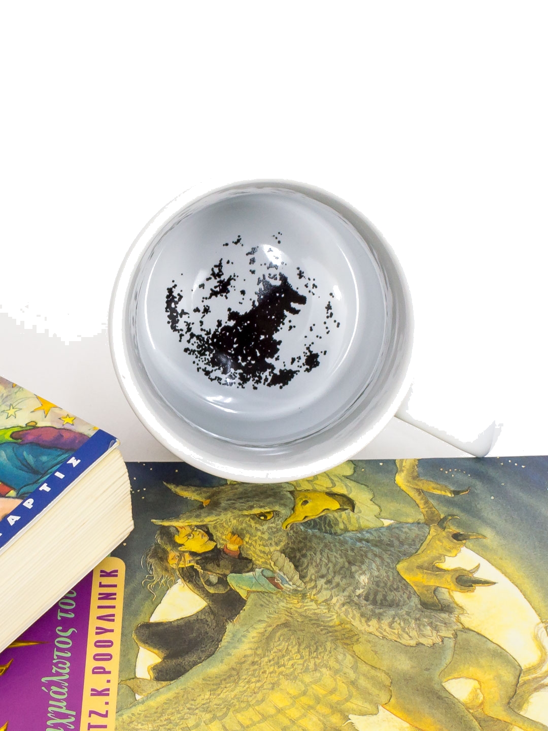 This magical Harry Potter mug features the red Hogwarts crest, featuring all four houses, on one side and the Harry Potter logo on the other. The inside base of the mug features the same tea leaves pattern of the Grim shown in the bottom of Harry's mug in a Third Year Divination lesson. - Officially licensed Harry Potter merchandise - 350ml - Ceramic - Imported