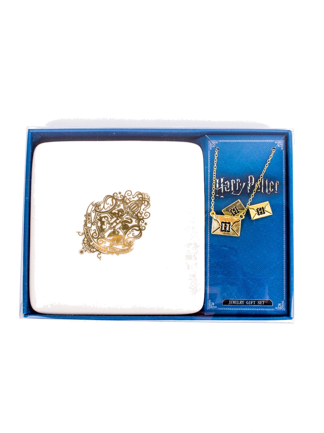 This amazing jewelry gift set includes earings & necklace featuring the Hogwarts acceptance letter and a ceramic dish to keep the when you don't wear them. - Officially licensed Harry Potter merchandise - Imported