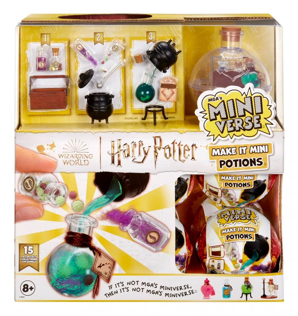 The Harry Potter™ x MGA’s Miniverse™ series brings you the DIY Make It Mini Potions™, miniature magical potion replicas you can make, set, display, and collect! Each surprise ball contains realistic mini “ingredients” and accessories to create your own tiny replicas of your favorite potions from the Harry Potter™ film series, including Skele-Gro, Amortentia, and Polyjuice!