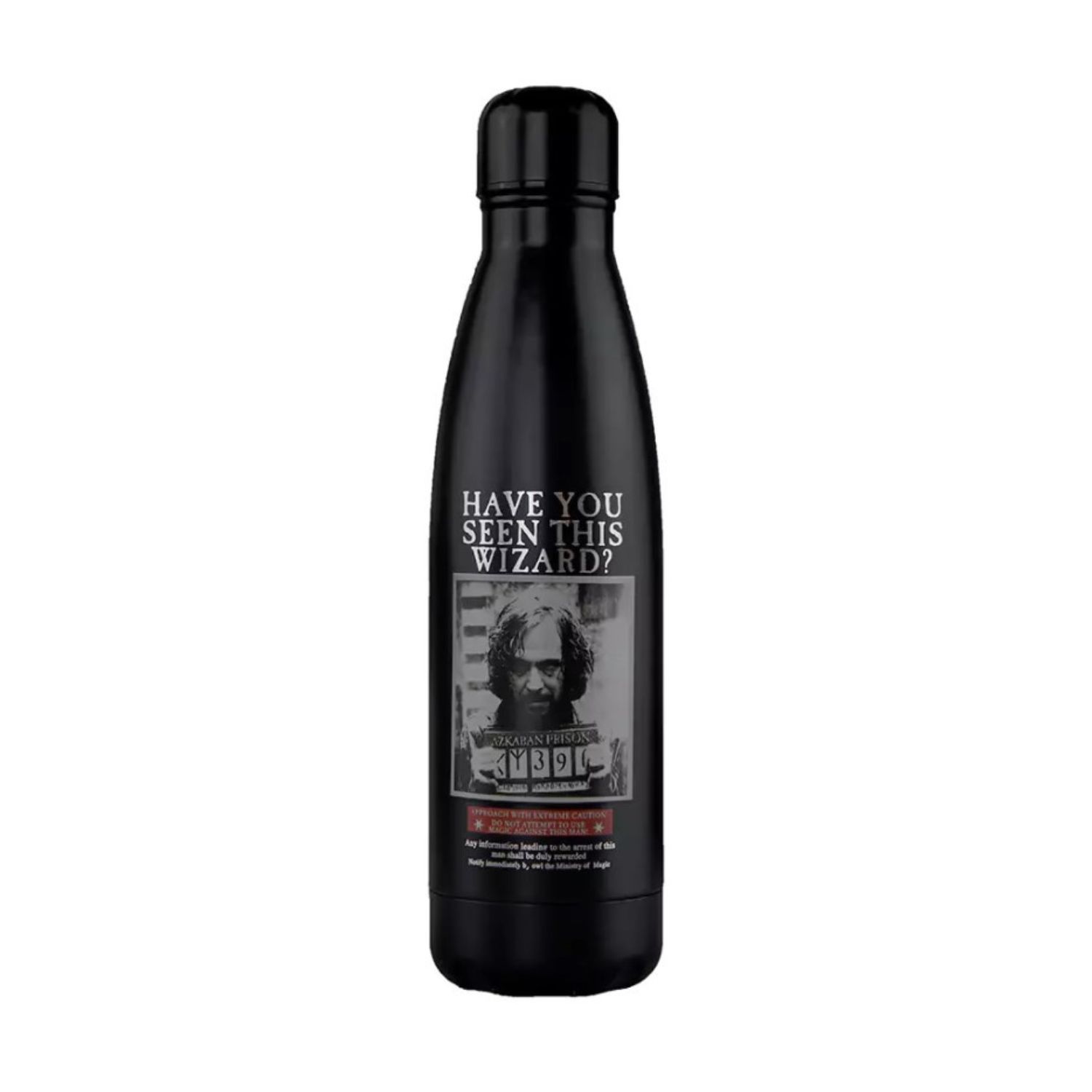 This is a high-quality bottle, made of stainless steel, that also maintains temperature, with a closure system perfect for everyday use. But the best part is its brilliant design, inspired by Sirius Black when he is sent to Azkaban prison.
