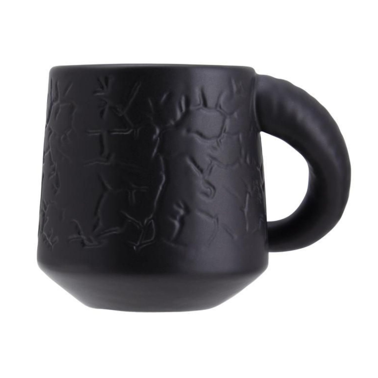 Enjoy the details of this coffee mug with the fiery Hellfire Club logo adorning the front and the horn-shaped handle curling up the side.