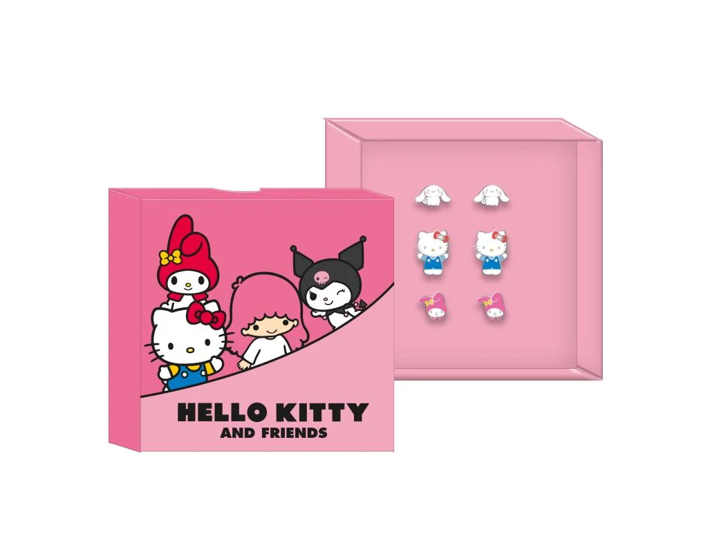 Δείξτε την αγάπη σας για τη Hello Kitty και τους φίλους της με αυτό το σετ από τρία ζευγάρια κομψά και χαριτωμένα σκουλαρίκια.