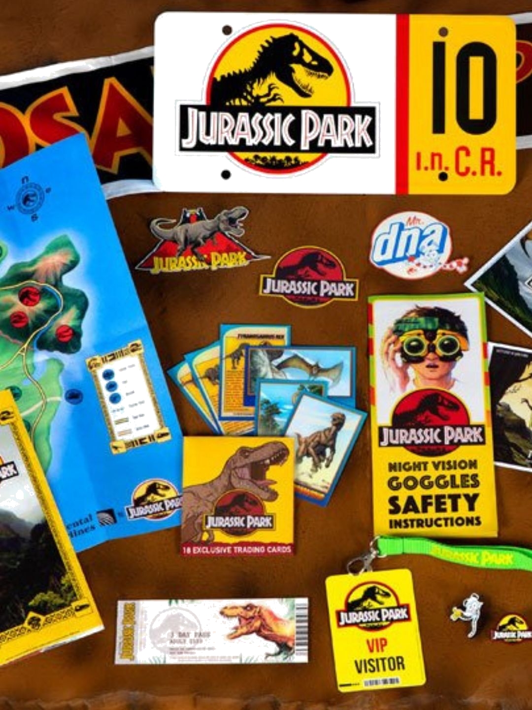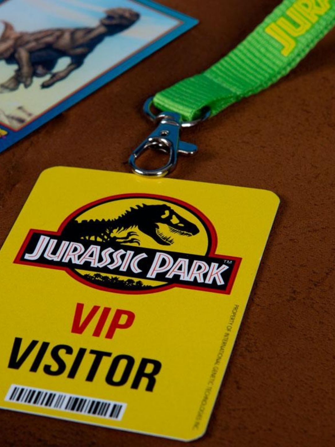 This Jurassic Park kit includes 15 products and it has a limited production to 1993 pieces. - Officially licensed - lIncludes icense plate (metal stamped), entrance ticket, banner, brochure map, envelope with trading cards, safety instructions brochure, 2 pins, lanyard, badge, 2 postcards, 3 stickers - Imported