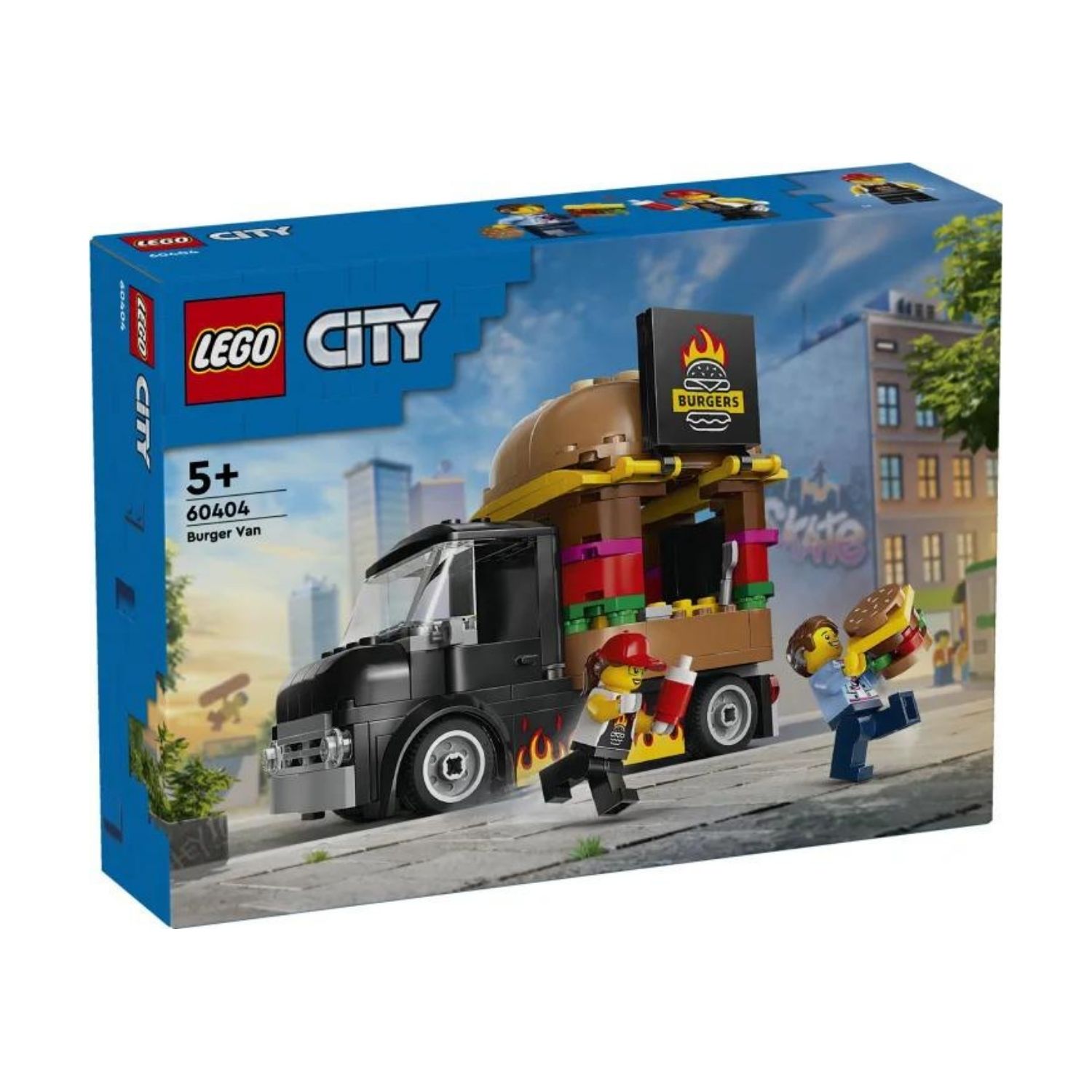 Load up the burger truck and head for the hipster district of LEGO® City. Fold up the service hatch to display your flame-grilled burger sign, hop into the prep area and serve the city’s hottest fast food to the coolest customers in town. When you’re done, jump behind the wheel and drive this awesome mobile takeout to the next location!