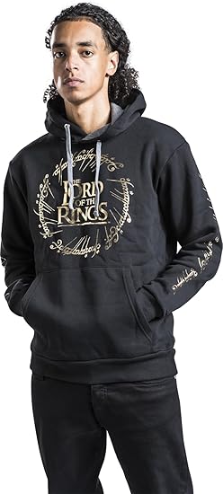 The Lord Of the Rings Foil Hoodie is an officially licensed Lord of the Rings product. This black unisex pullover hoodie features an iconic design from the Lord of the Rings Trilogy, printed with a foil effect for a striking look. Made from 50% cotton and 50% polyester, it offers comfort and durability, and is machine washable at 30°C for easy care.