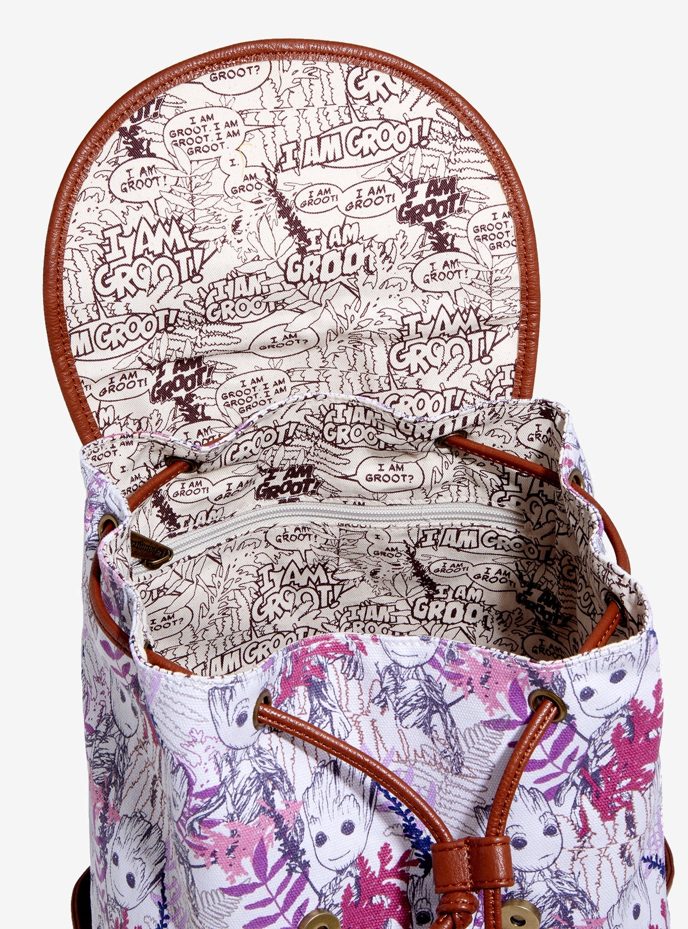 I Am Groot! This backpack features leaves canvas print with Groot. - Officially liscensed Marvel merchandise - 42cm x 33 cm - Polyethane - Imported