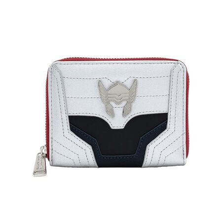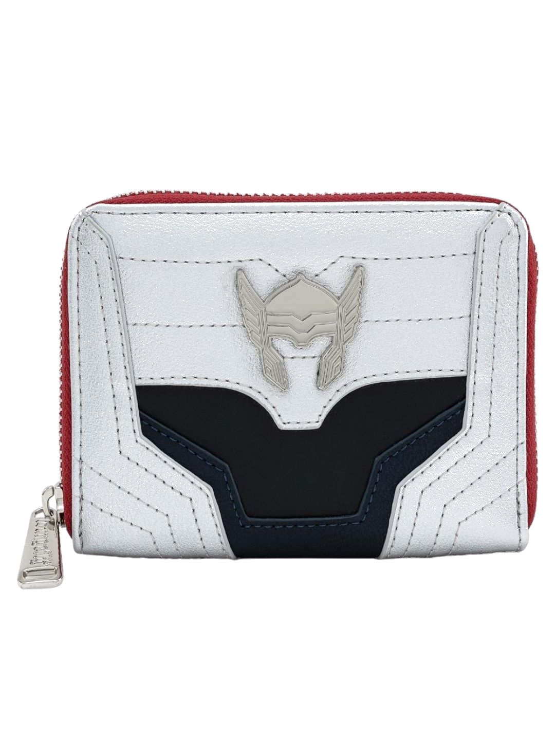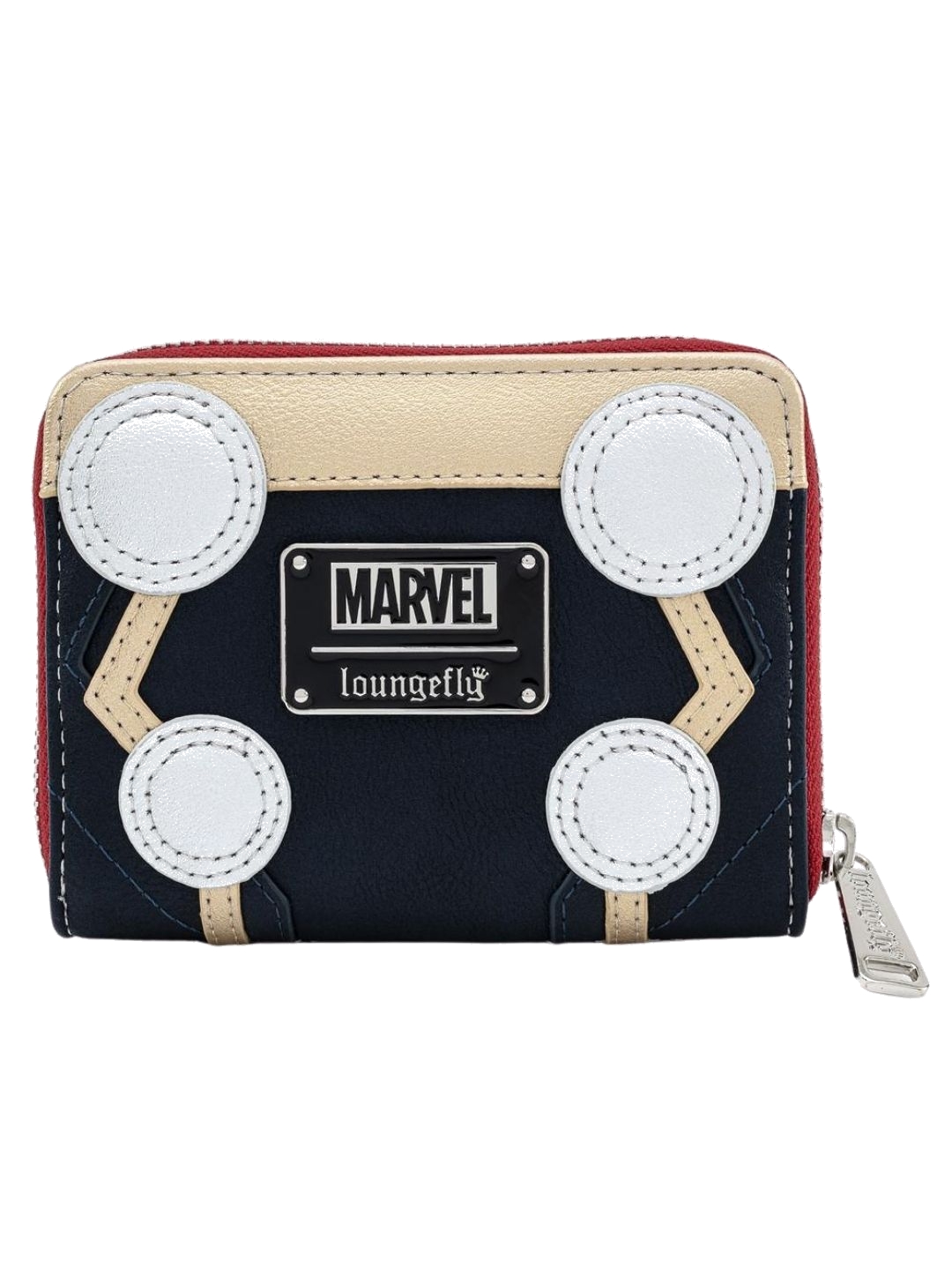 The Loungefly Marvel Thor Classic Wallet is the ultimate accessory for any Thor and Marvel fan. Made from faux leather, it features a zip-around closure, printed, debossed, and metal plaque details, while the exterior pays tribute to Thor’s classic suit. The interior lining includes a pattern featuring Thor’s hammer, making it a unique collectible for comic and movie enthusiasts. This is an official Marvel product, perfect for daily use or collection.