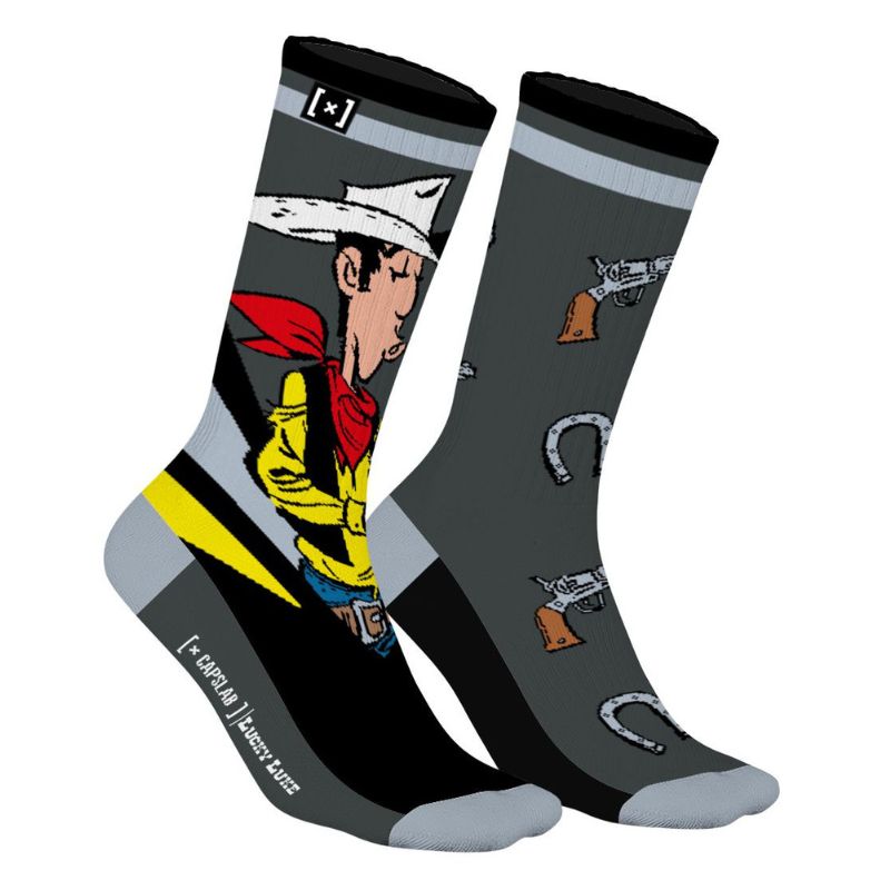 The Lucky Luke Pistol socks by Capslab bring together pop culture nostalgia and everyday comfort. Inspired by the legendary gunslinger Lucky Luke, these socks feature a unique design that makes them a must-have for comic lovers and retro fans alike. Crafted from premium cotton, they ensure a soft feel and lasting durability.