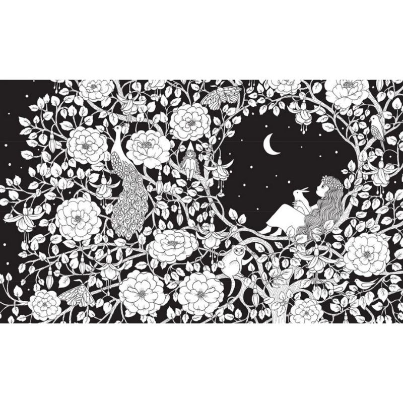 Embark on a magical adventure in the newest coloring book by Maria Trolle. Enjoy a moonlit walk through a garden full of beautiful flowers, discover fabulous plant treasures in a dense forest, and tiptoe through fairy tales at every corner.