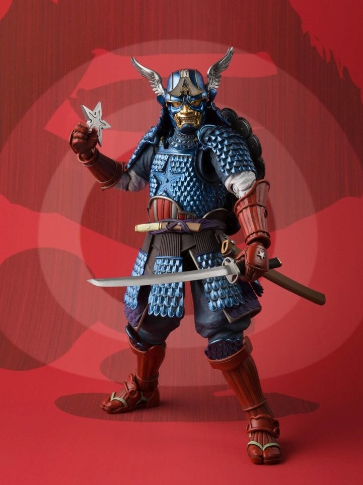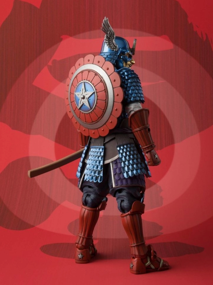 Captain America -- envisioned as a samurai warrior! - Officially licensed - By Tamashii - 18 cm - PVC - Includes 4 optional hands,shield parts, and sword parts - Imported