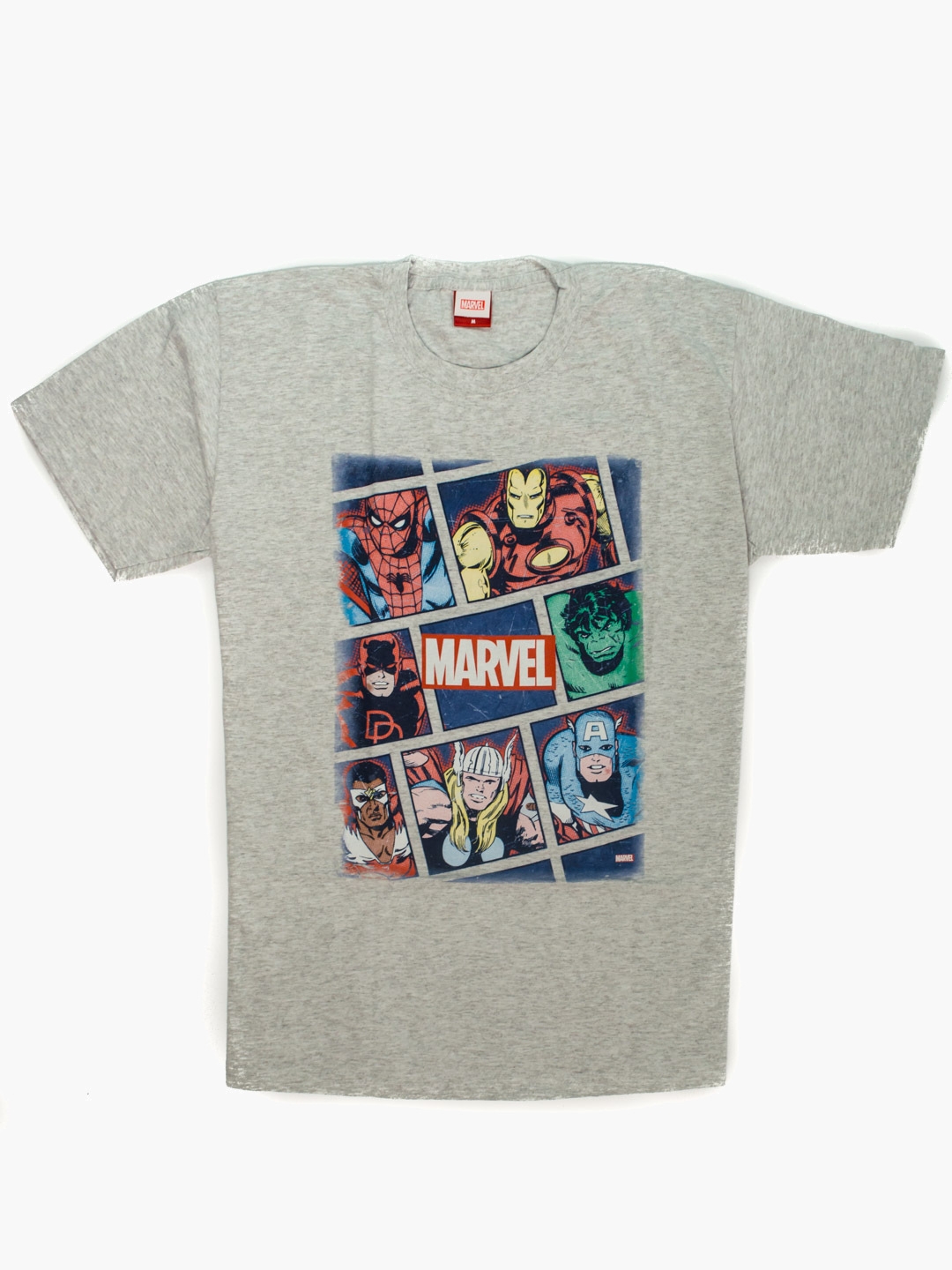 This iconic Marvel tee features all famous Marvel heroes like Iron-Man, Captain America, Hulk & Thor! - Officially licensed - 100% Cotton - Imported