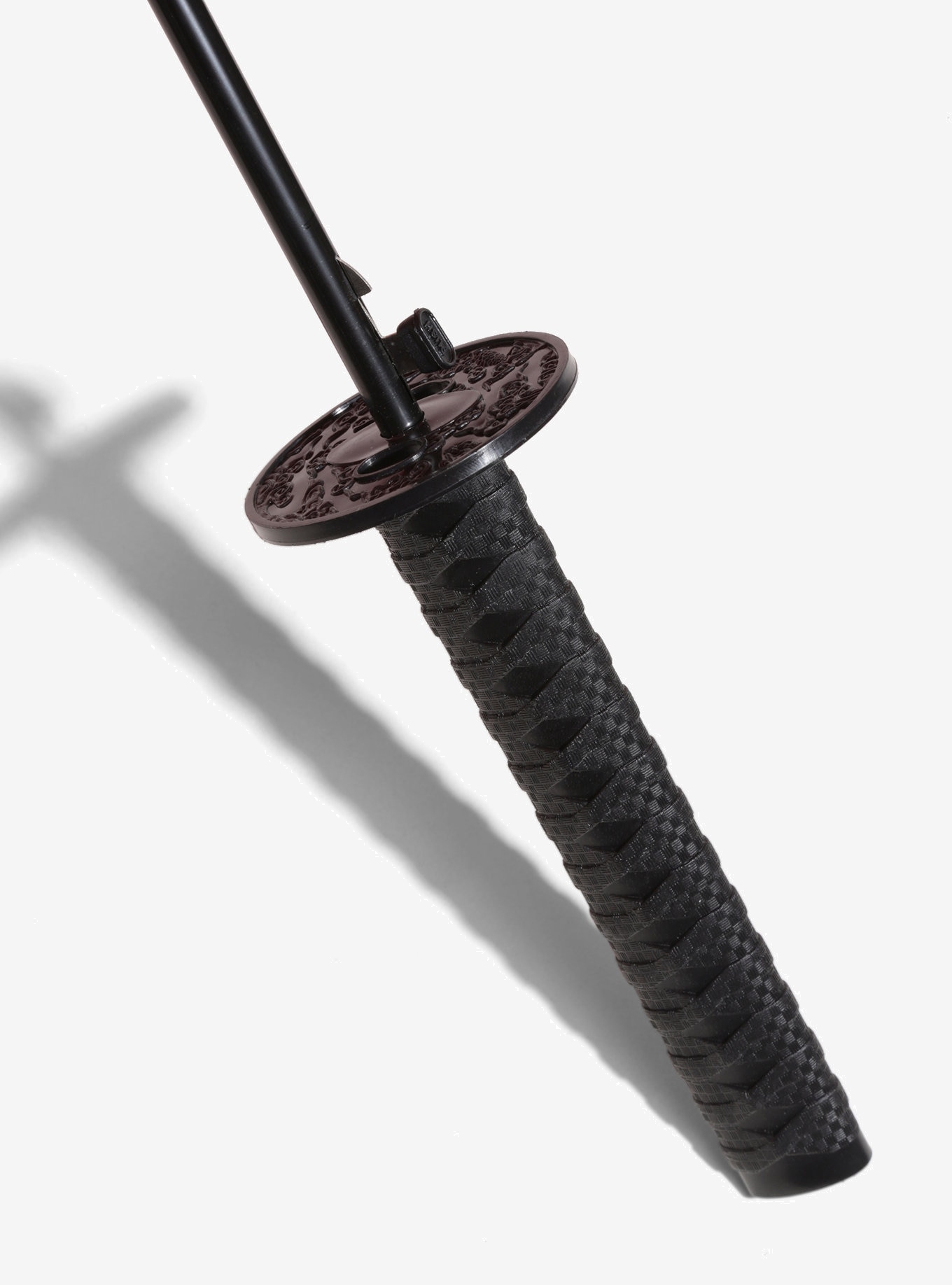 Stay dry by stealing a little bit of the Merc with a Mouth's style. This umbrella features a katana inspired handle and the protecting sleeve features a crossbody strap, just like Wade Wilson's katanas. - Officially licensed Marvel merchandise - Imported